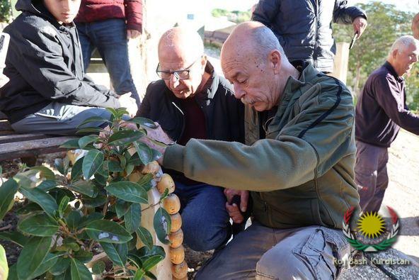 The emblem represents the Kurdistan flag colours, where the red represents the Kurdish Newroz fire. The Yellow football represents the Kurdish Sun and the Green banner represents the Green Kurdistan scenery.